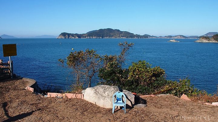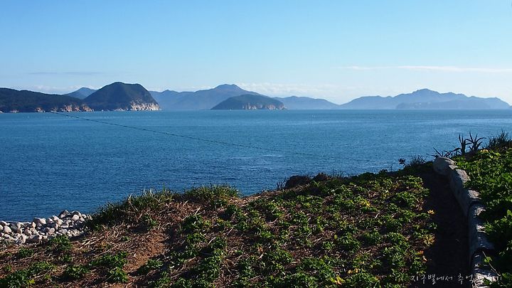 앞쪽으로 바라다 보이는 섬은 초여름 수국으로 유명한 연화도와 가장 큰 섬인 욕지도