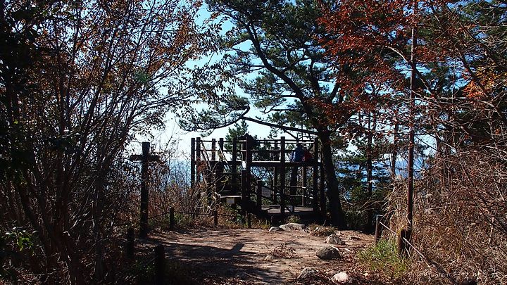 정상에는 전망대가 있는데 앞쪽으로 잡목들이 키가 자라서 조망이 모두 가려져 있네요.