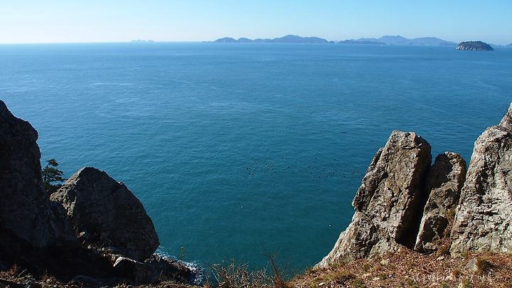 좌측이 추도인데 그 사이 희미하게 해골바위가 있는 수우도가 조망 됩니다.