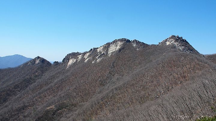 정상 우측의 북봉과 함께 멀리 거망산이 오뚝하게 솟아있는 모습이 보입니다.