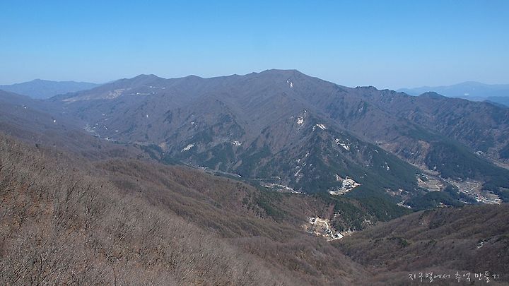 거망산과 북봉을 기준으로 멀리 덕유능선이 조망 됩니다.