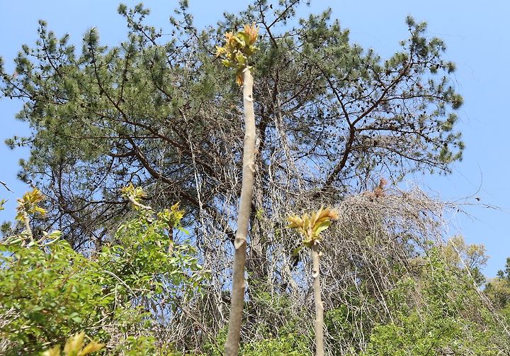 며칠 전 집 근처 나무에서 싹이 자라는 게 보였습니다.