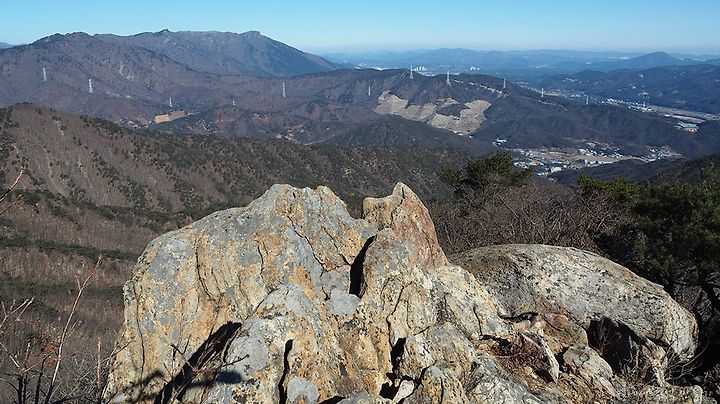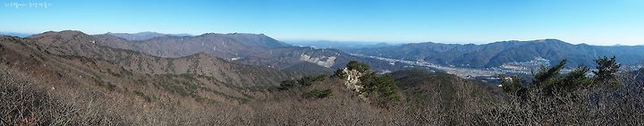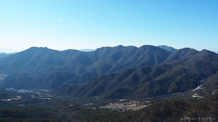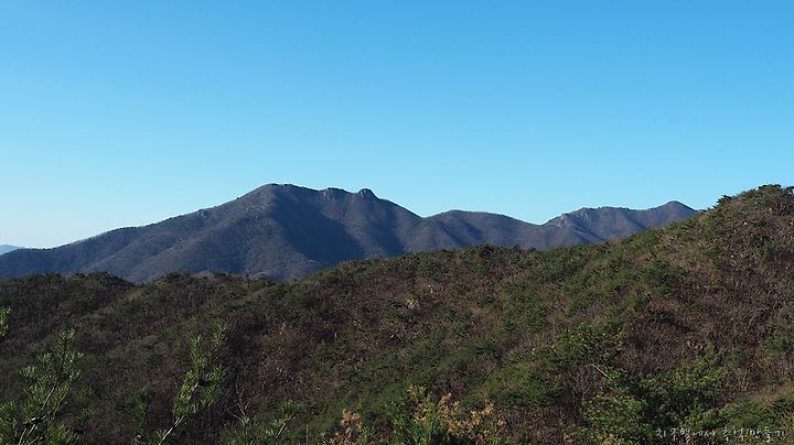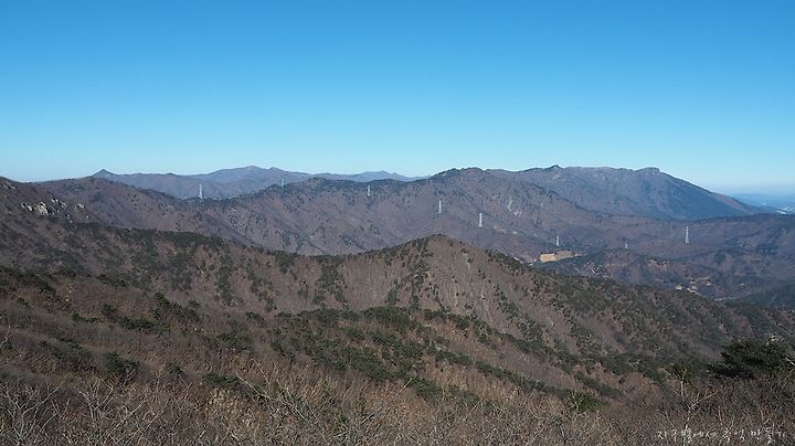 가운데 능선이 올라온 구간이고 중간쯤 솟은 봉우리가 천마산입니다.