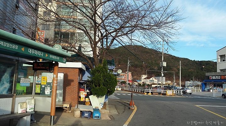 상북면 소토리의 대우마리나버스정류장 옆에는 승용차 10대 정도의 주차 공간이 있습니다.