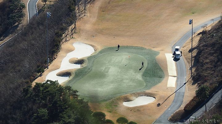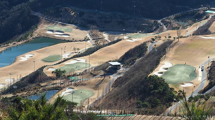 앞쪽 골프장 뒤로 영축산 능선이 조망 됩니다.