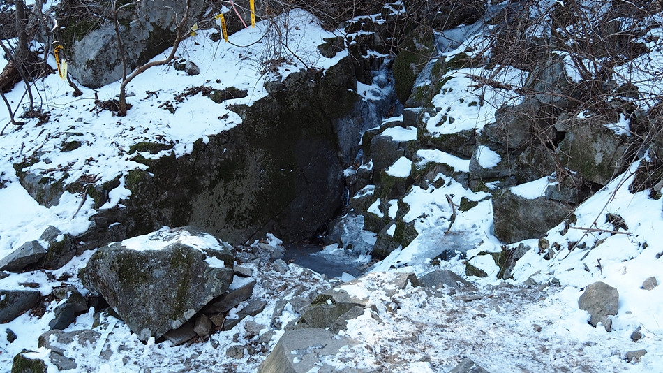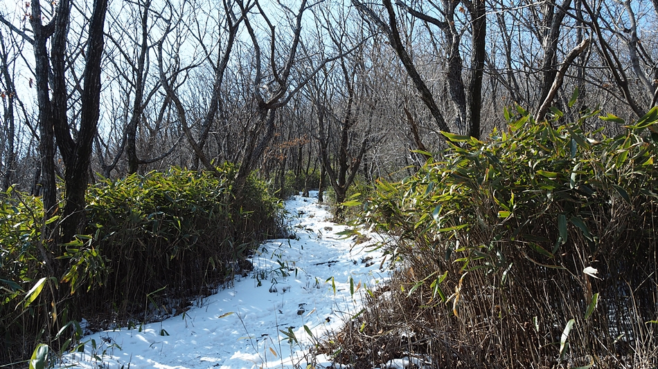 눈길 아래가 얼어있어 조심스러운 하산길입니다.