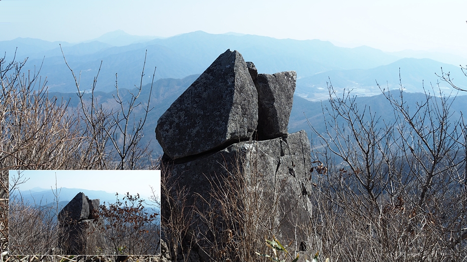 바위 앞으로 잡목이 무성하여(작은 사진) 다용도칼의 톱날로 한참이나 전지작업을 했는데 별로 잘한것처럼 보이지 않아 아쉽..ㅎ
