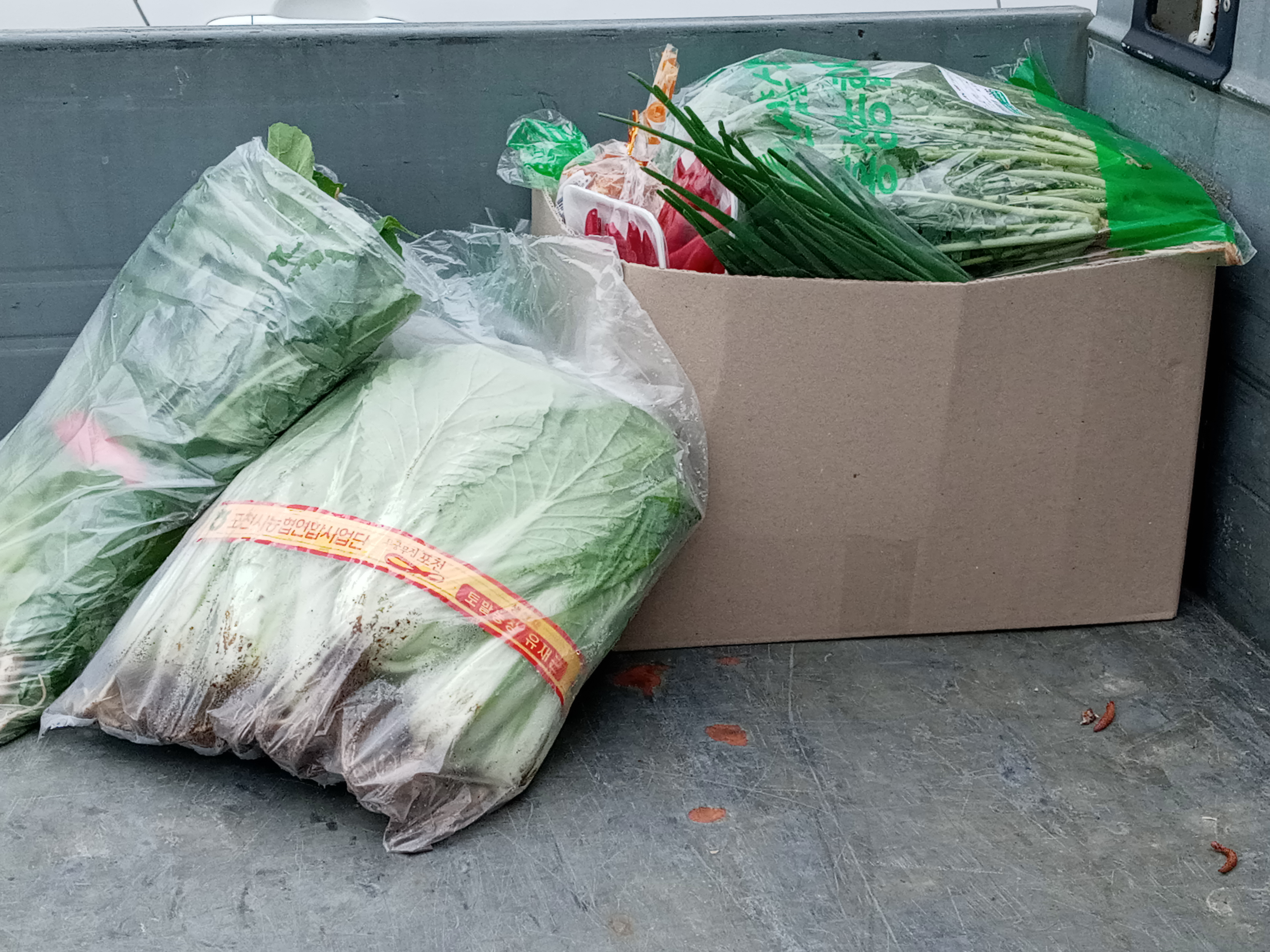 열무김치 두 단과 얼갈이배추 두 단을 구입했습니다(쪽파 포함)