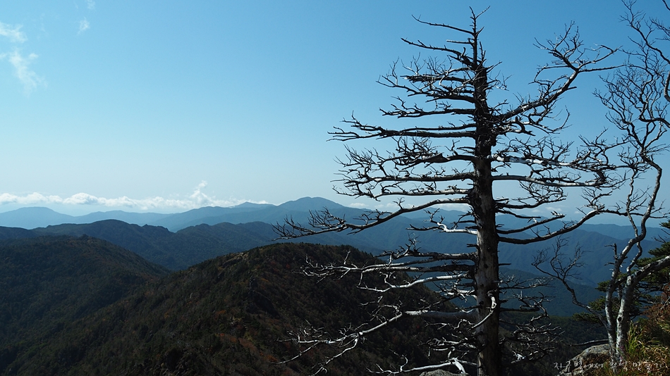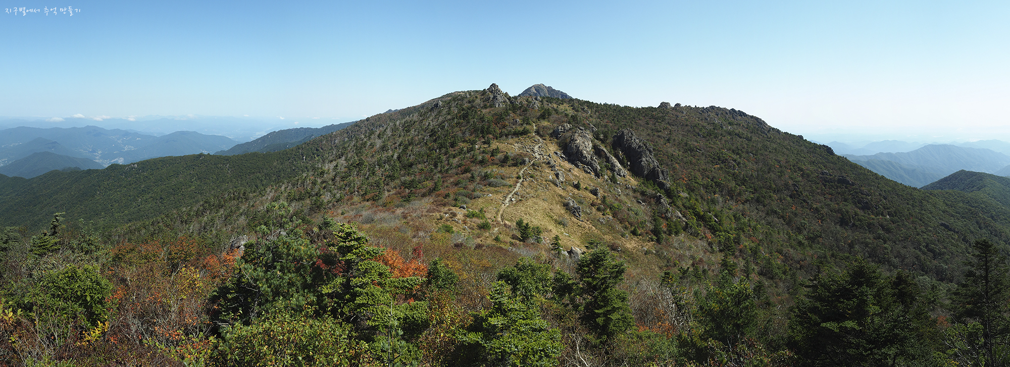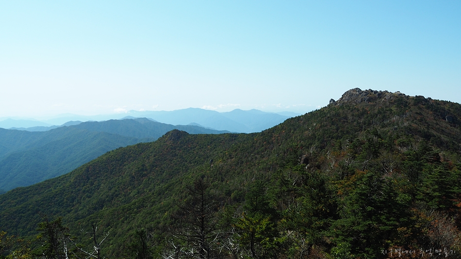 뒤돌아 본 촛대봉과 좌측의 남부능선입니다.