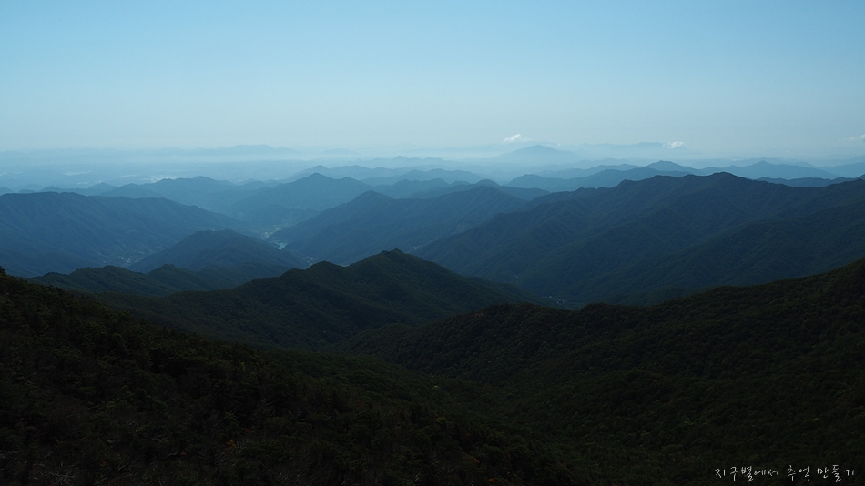 지나 온 능선 뒤돌아 보며 잠시 숨 한번 돌리구요.