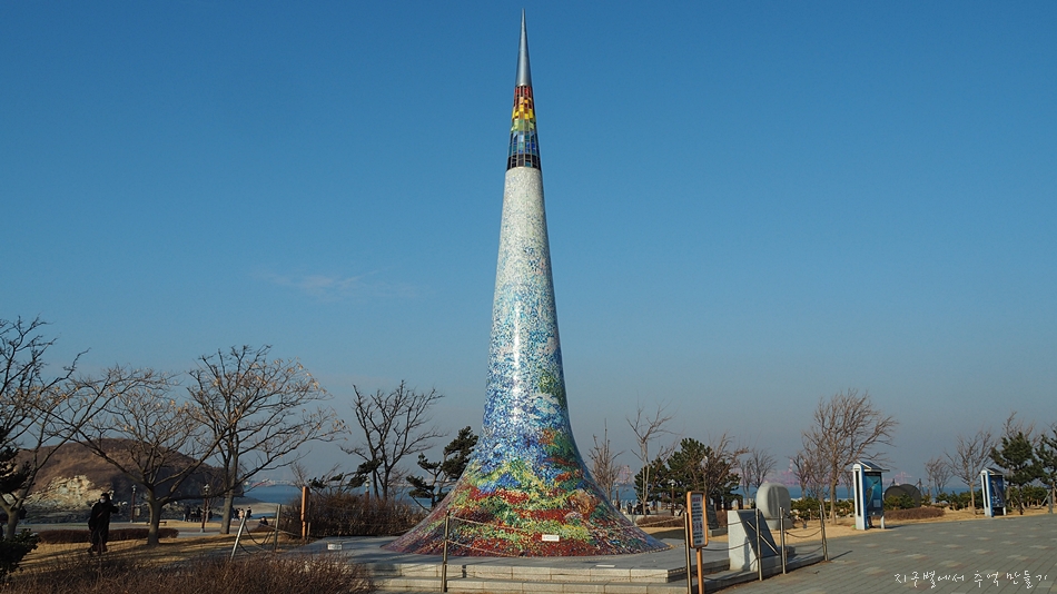 보이는 섬이 여우섬이고 그 사이에 부상탑이 있습니다.