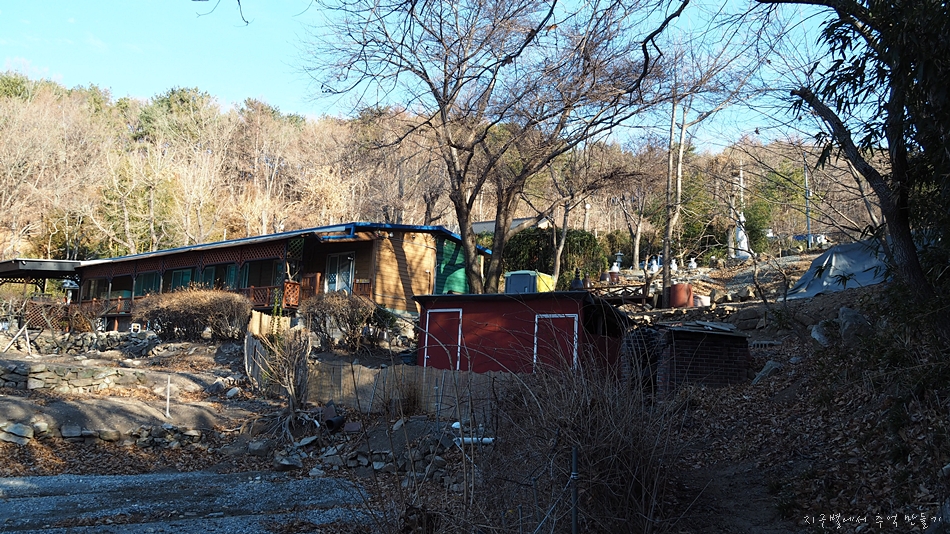 이곳으로 들어가서 포장된 도로를 따라 주욱 끝까지(대략 500m), 마지막 대성집이란 곳을 조금 더 지나면 고개 안부가 나옵니다.