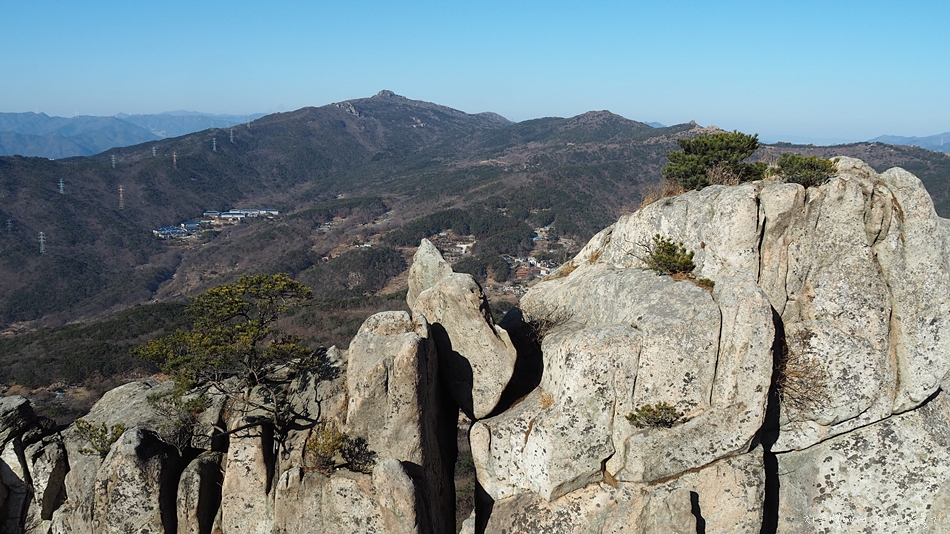 가운데 오늘 들머리인 산성마을이 보입니다.