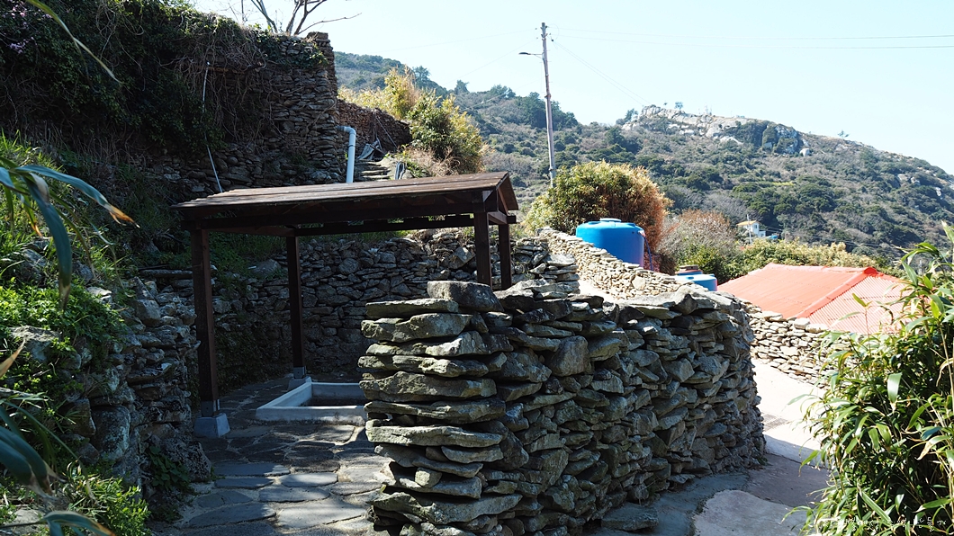 산에서 흘러 내려오는 물길도 작은 틈만 남겨두고 모두 돌담을 쌓아 바람을 막아서고 있답니다.