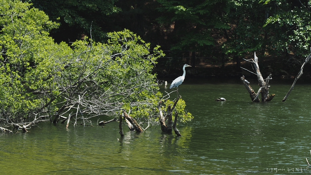 조금 전에 둘레길을 거닌 봉암저수지(수원지)가 빤히 내려다 보입니다.