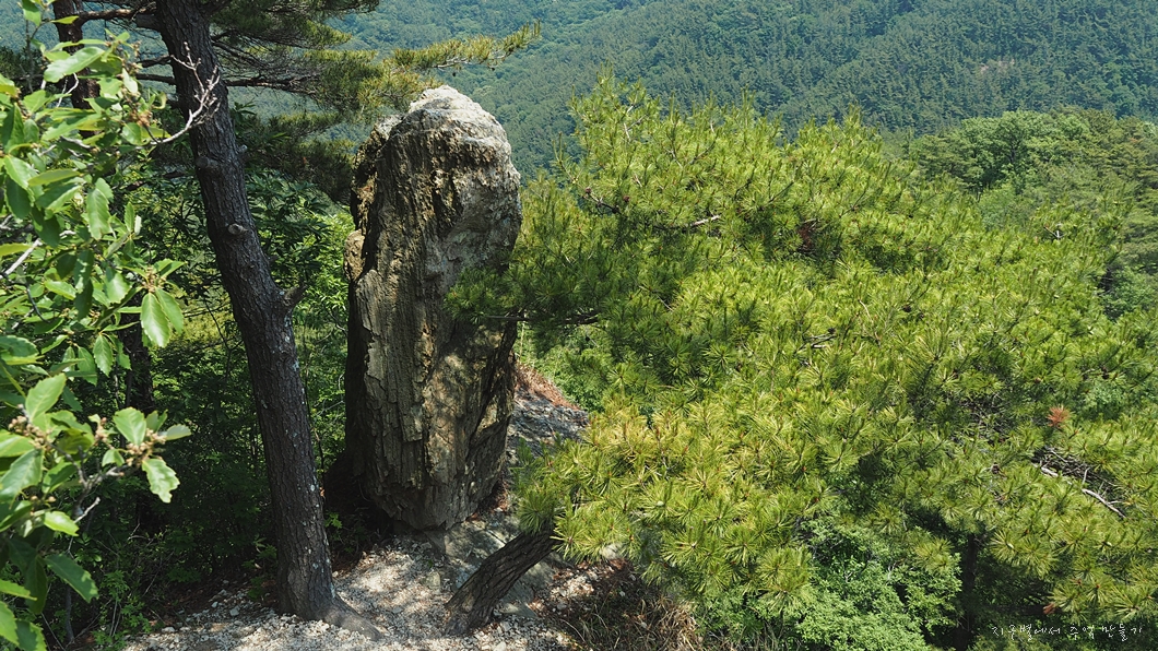 상사바위 앞에 오뚝 서 있는 오뚝이 바위(?)
