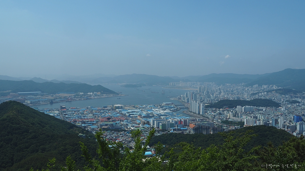 무학산이 가장 돋보이고 그 앞의 마산과 마산 앞바다의 도심 조망이 압권입니다.