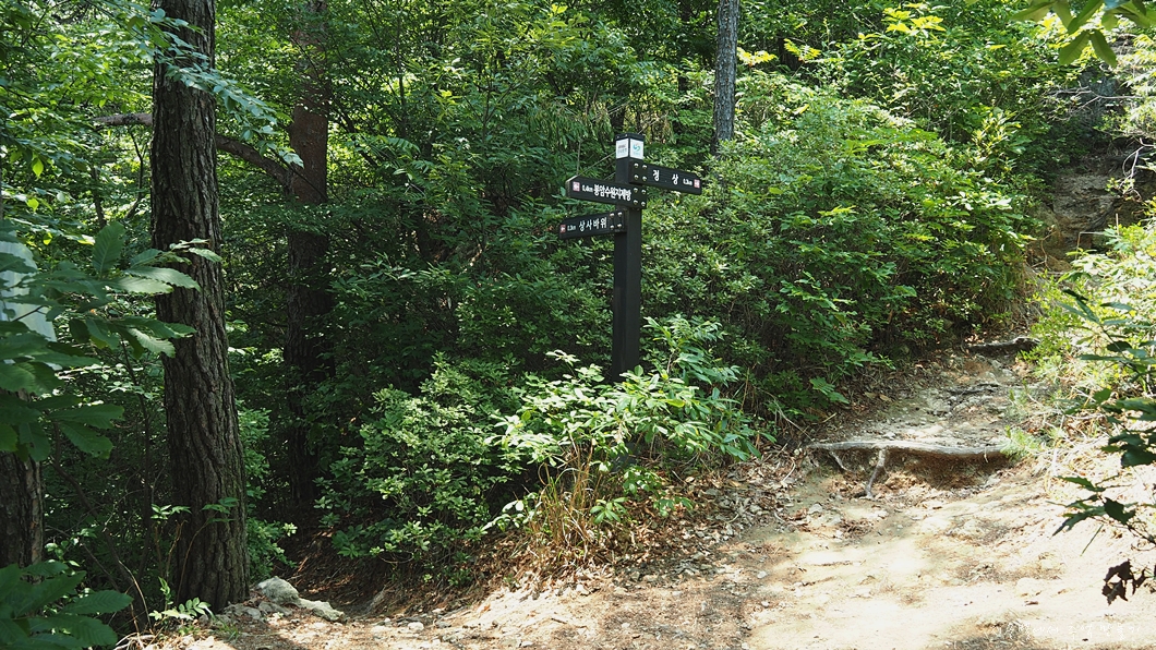 다시 옆구리 산길을 타고 이동하여 정상으로 올라갔던 등산로와 만나게 됩니다.
