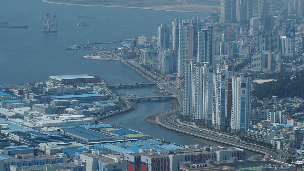 공단 안으로 깊숙이 들어온 S라인의 바다 물길과 해안로가 그림 같습니다.