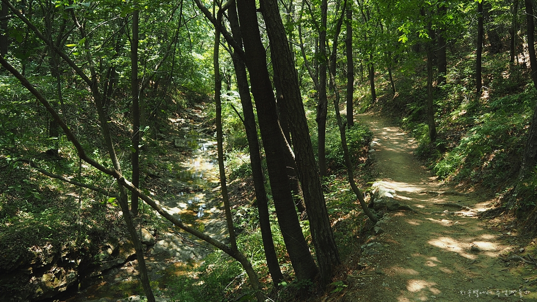 수원지로 모여지는 계곡 물길을 따라 아주 편안한 길을 내려갑니다.