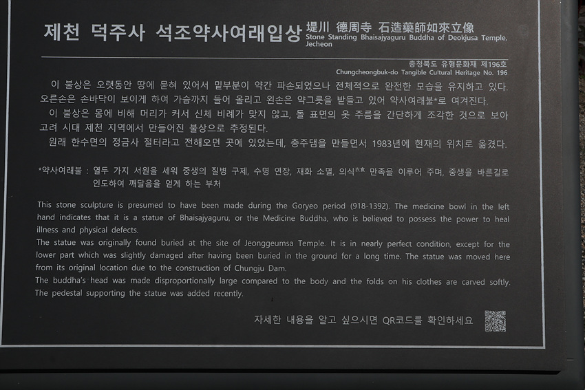 1 충주댐 건설로 수몰되는 한수면 역리에 있던 고려시대 석조약사여래입상을 덕주사로 옮겨 봉안했다고 합니다.