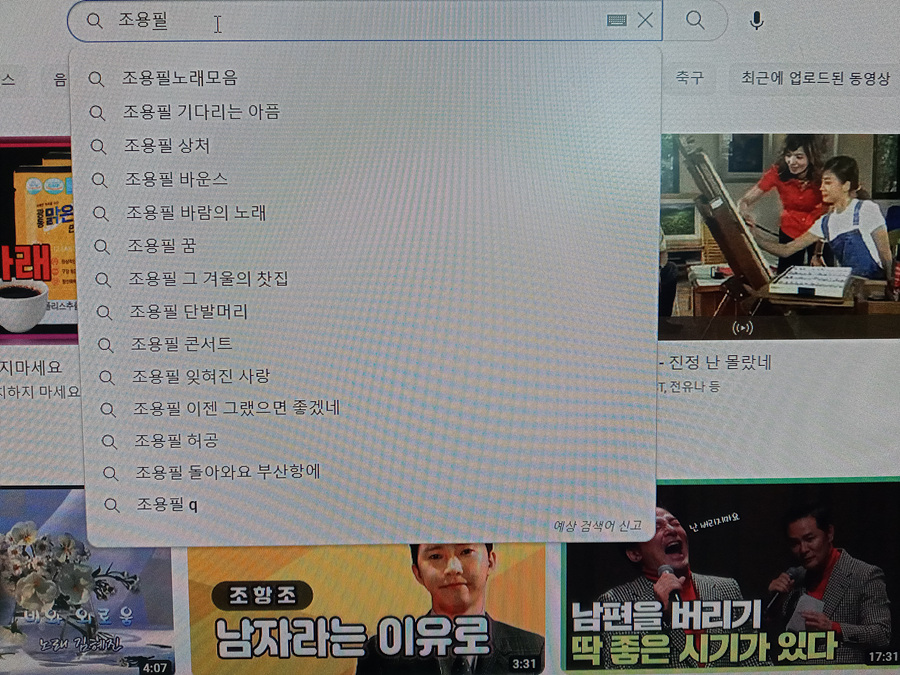 조용필 님 클릭하면 많은 제목이 나옵니다.
