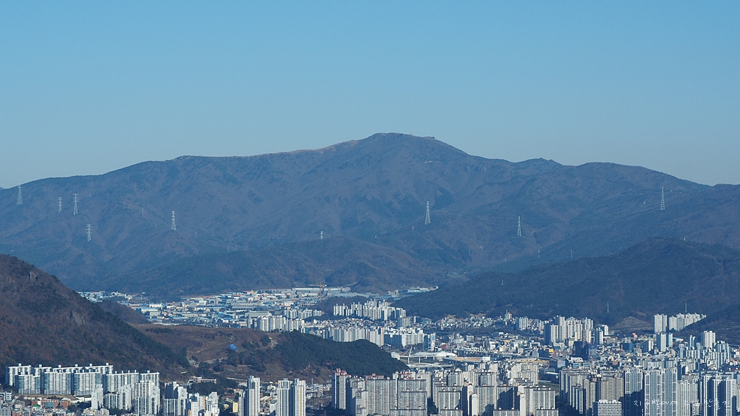 조금 고개를 좌측으로 돌리면 멀리 김해 무척산이 뒤편에 자리하고 있습니다.