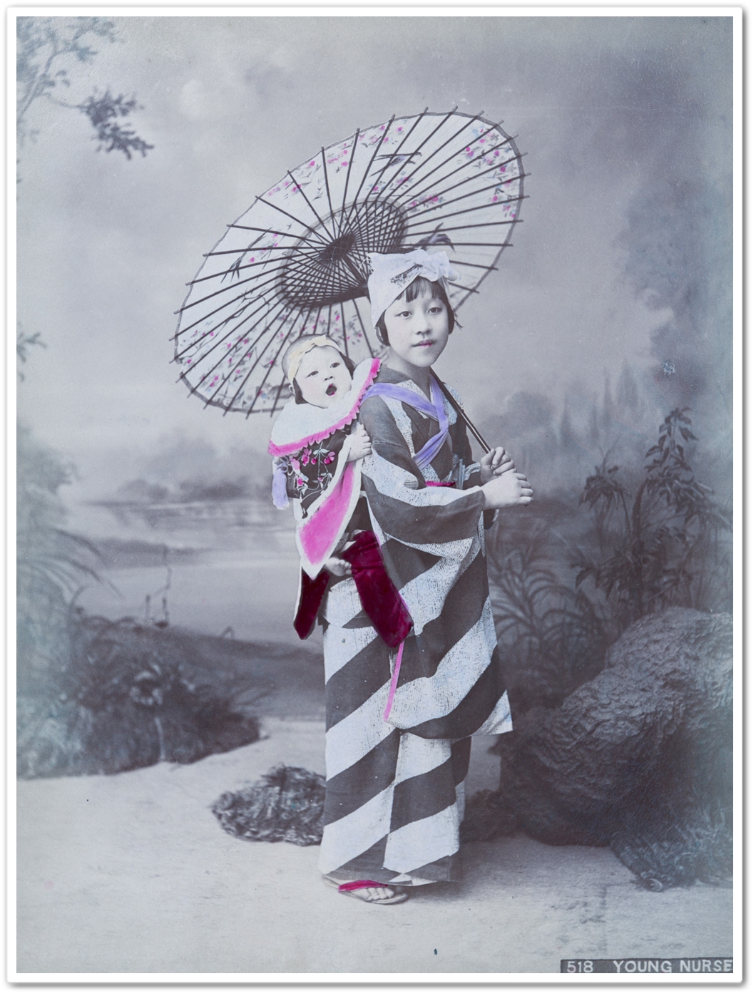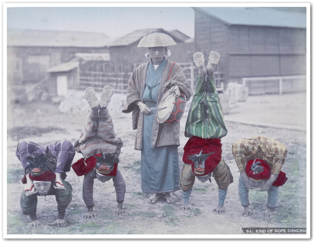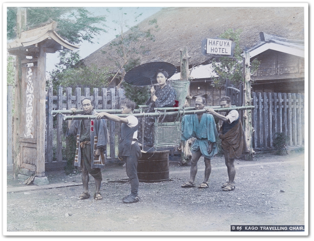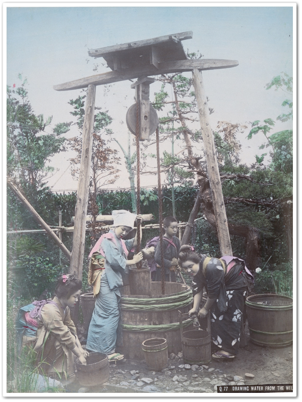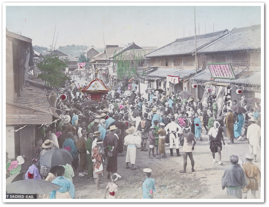 흑백으로 찍은 사진을 채색한 한 것으로서 당시의 일본 모습을 엿볼 수 있는 귀중한 자료이네요.