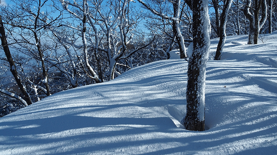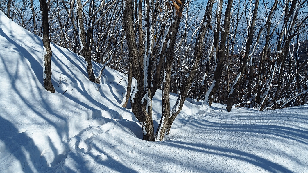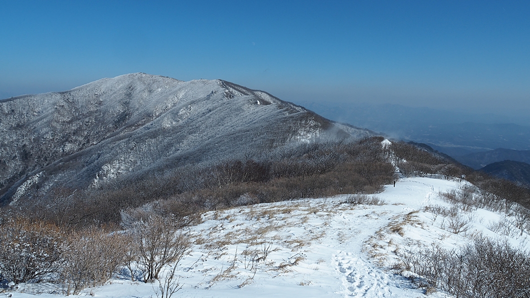 능선에는 세찬 바람으로 눈이 없지만 능선 아래쪽 등산로에는 50cm 이상의 눈이 쌓여 있네요.