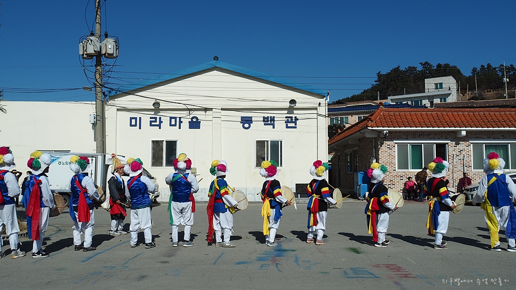 섬마을 외진 마을에서 정월대보름 행사를 옛날부터 순수하게 마을 사람들로 이제까지 이어져 내려오며 개최하고 있다는 게 놀랍습니다. 요즘 각 지자체서 열리는 정월 대보름 행사는 대개 보여주기식인데 비해 이곳은 말 그대로 진짜 마을의 안녕과 풍어를 비는 간곡하고도 각별함이 담긴 행사였답니다.