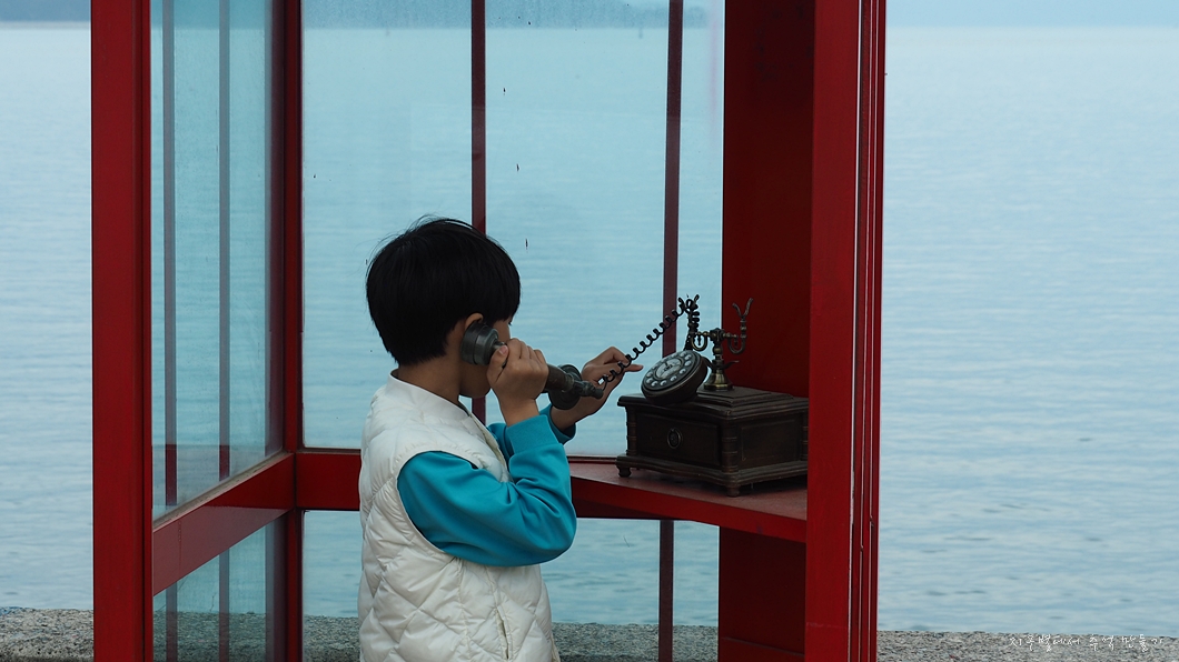 몽돌 해변에 있는 포토존 명소인 공중전화