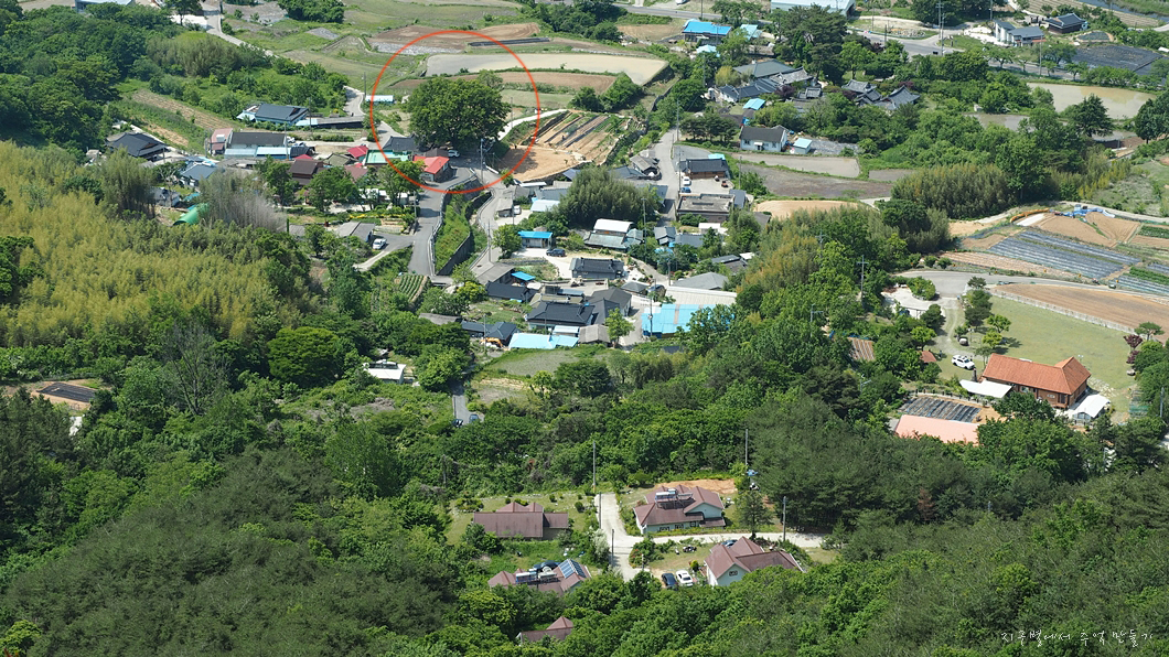 좌측 중간 아래 커다란 느티나무가 있는 곳이 들머리로 차를 세워둔 곳입니다.