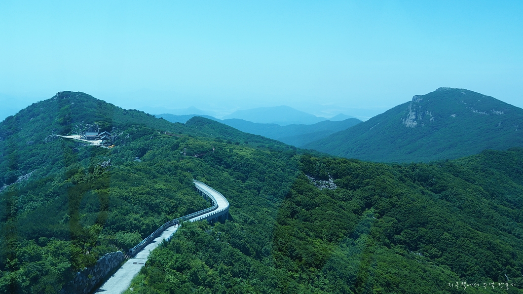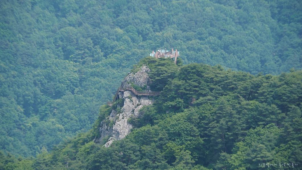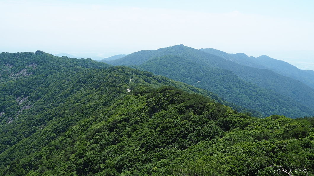 정상인 천왕봉과 3km 정도 떨어져 있는 대견봉은 해발 1,034m이지만 바로 그 아래 대견사(해발 1,001m)까지 셔틀버스로 오를 수 있는 곳이라 누구나 쉽사리 공짜 산행을 할 수 있는 곳이기도 하지유.