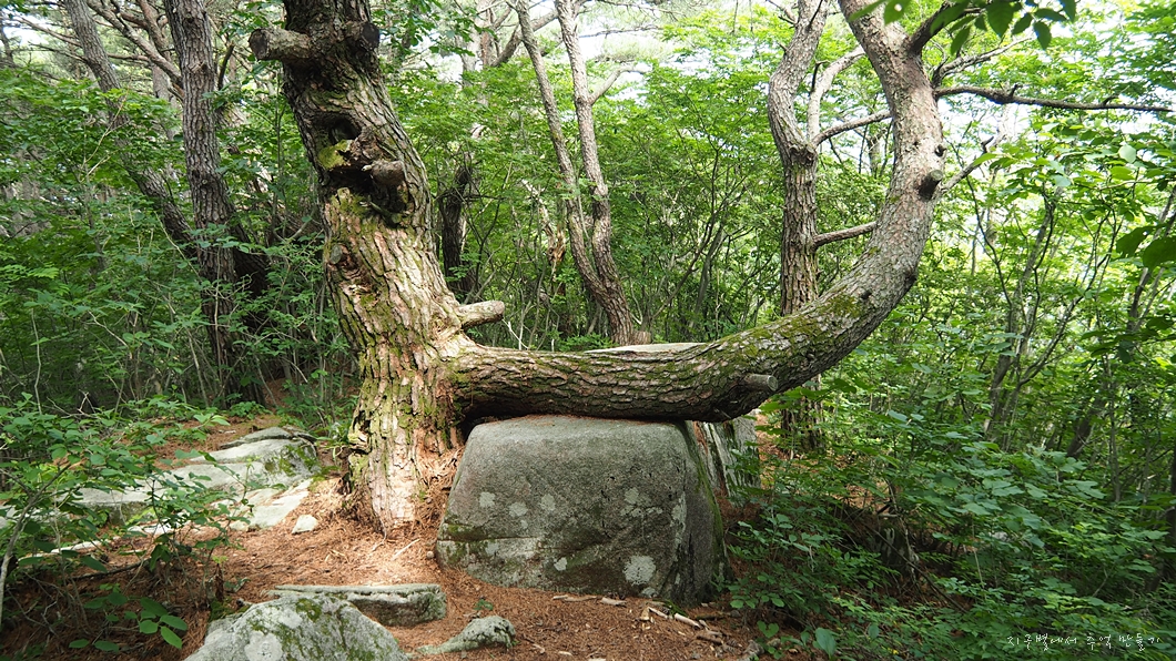 상당히 큰 소나무인데 천연덕스럽게 바위에 걸터앉아 있네요.