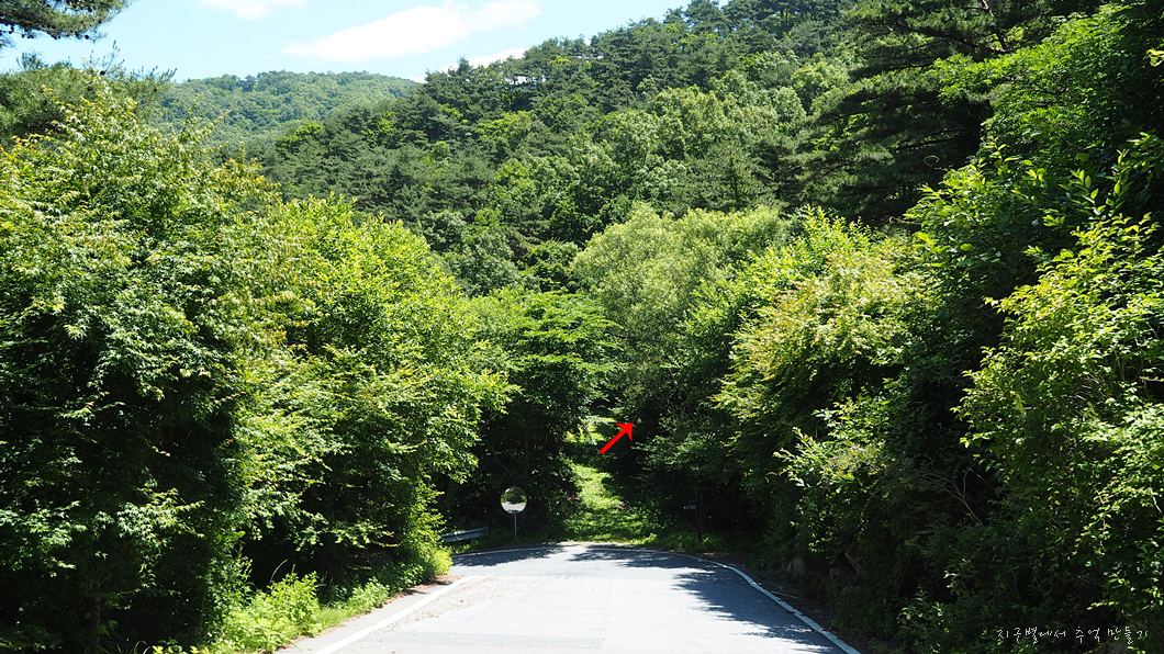 곧장 들어가면 자연휴양림을 거쳐 대견봉 곧장 오르는 길입니다.