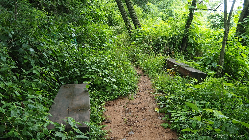 하루종일 비가 내리다 말다 하는 날씨가 이어져 반바지 차림에 스틱 대신 장우산을 들고 올랐구요.