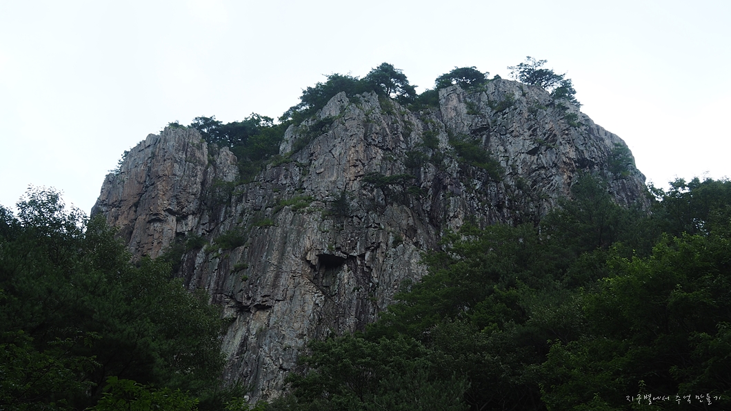 긴 장마철 중간에 하루이틀 비가 소강상태라고 하여 가장 덥다는 중복날 밀양의 구만산을 찾았는데 폭포까지 오를 때만 하여도 폭염에 파란 하늘을 보며 올랐는데 폭포 지나 정상으로 오르는 가파른 경사길부터 날씨가 급격히 변하더니 비를 만났네요.