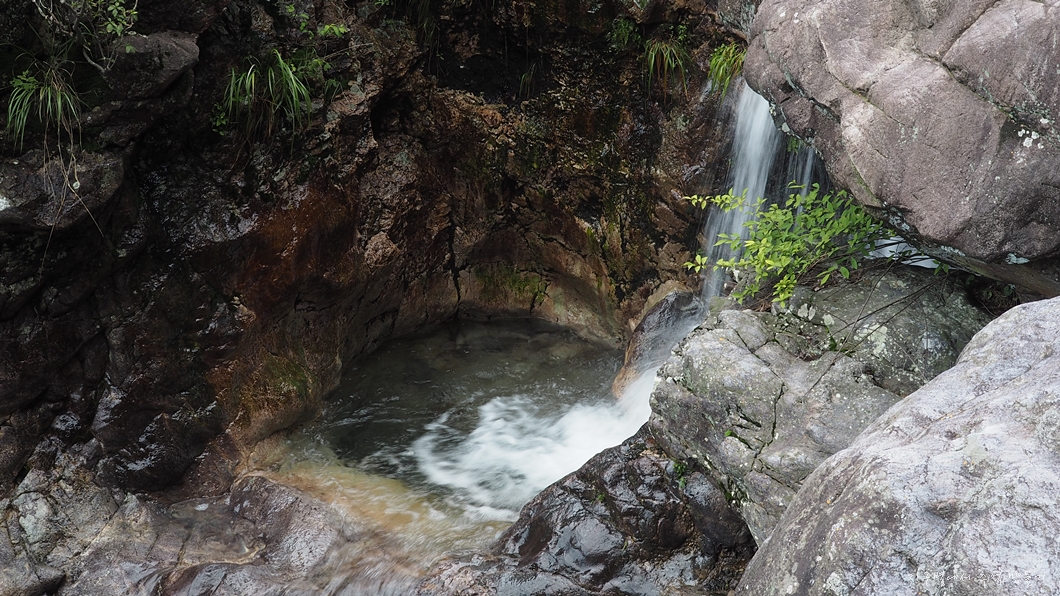 폭우성 비가 한차례 내려온 계곡에 폭포가 만들어졌습니다.