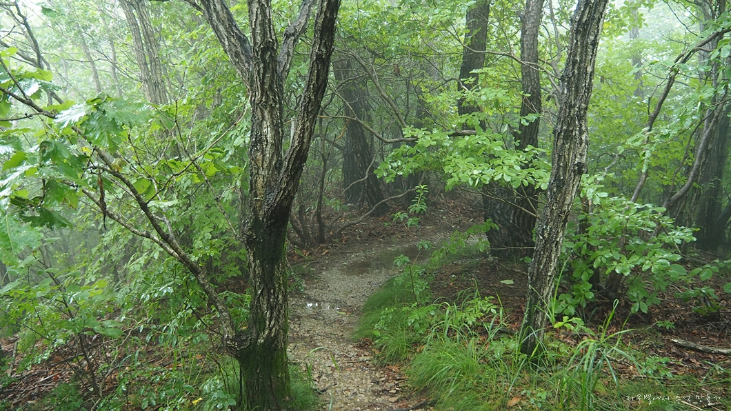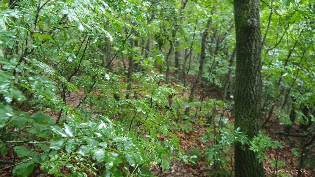 열심히 능선을 타고 내려오니 비가 조금씩 그치기 사작하네요.