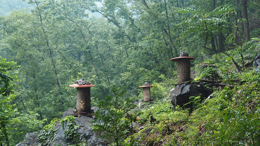 구만암 벌통도 비를 맞고 있는데 모아 둔 꿀이 줄어들 것 같네요.