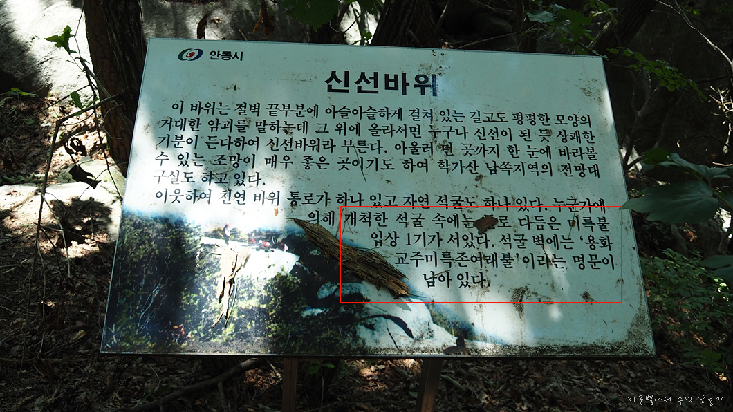 안내판 자리로 올라와서 퍼질고 앉아 검색을 해 봤는데 그 어느 글에서도 이곳 신선바위에서 석굴과 입상 석불을 봤다는 내용이 없네요.