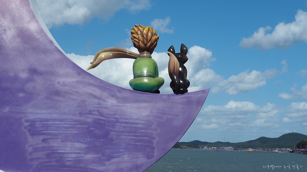 어린왕자와 절친인 여우가 반월에 다정하게 앉아 있습니다.