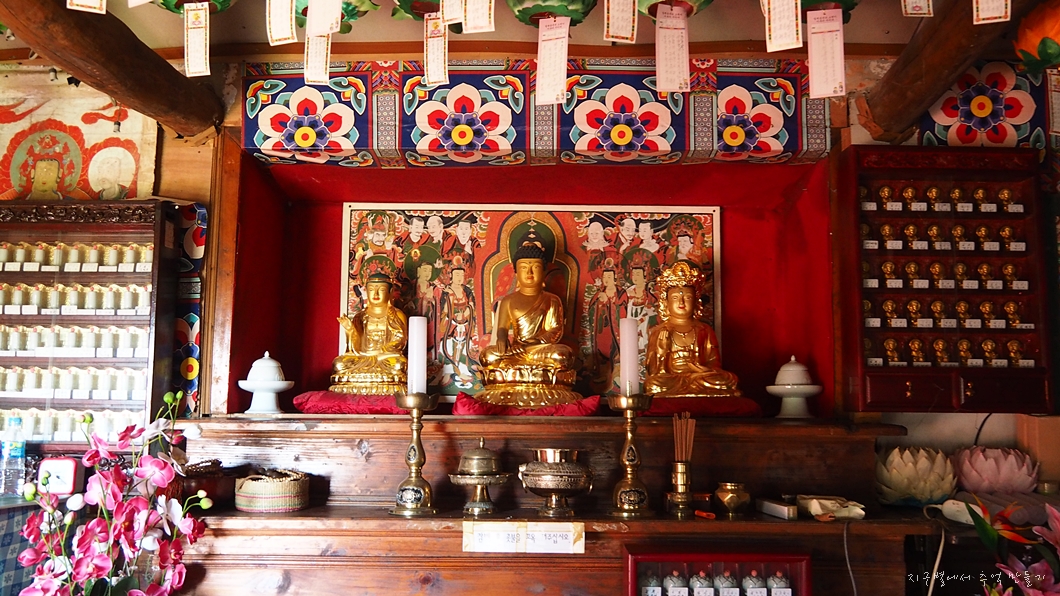 스님이 기거하는 요사채보다 반의 반 정도 되는 크기의 대웅전 건물.