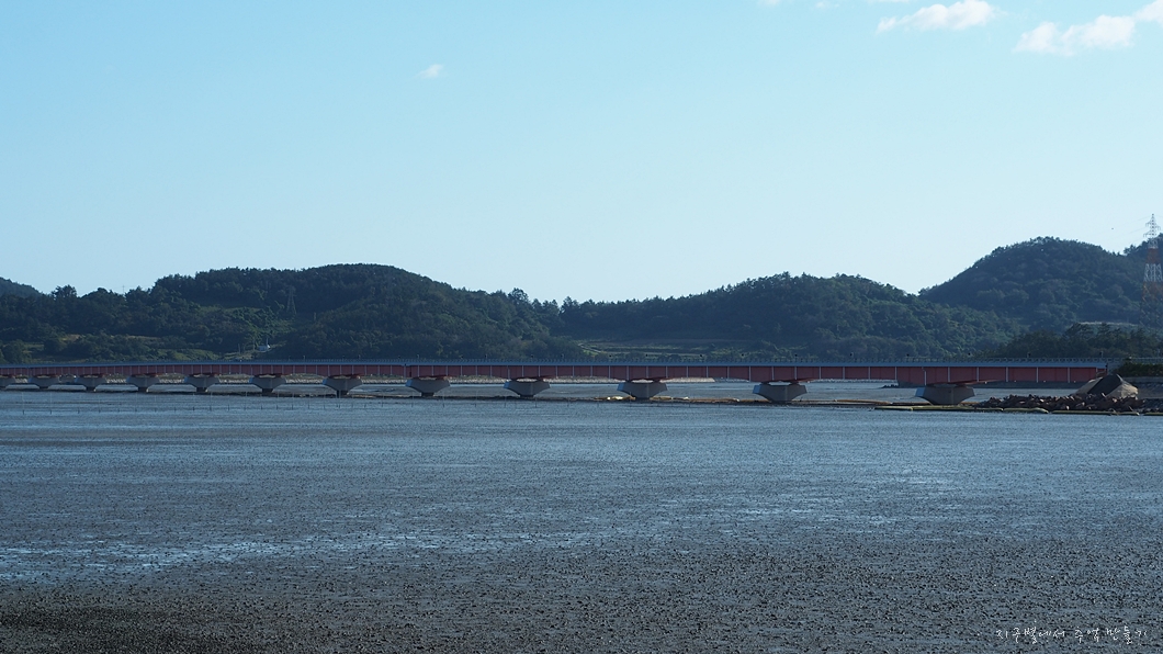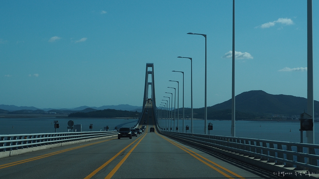 안좌도에서 반월도 들어가면서 바라본 박지도로 연결되는 퍼플교.