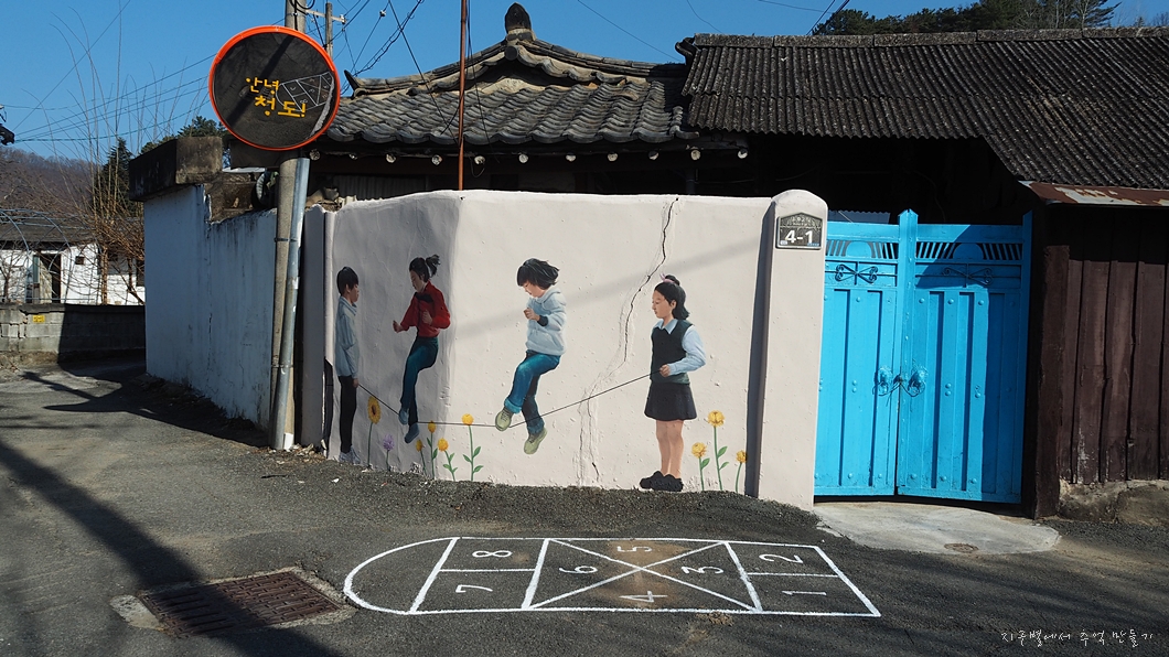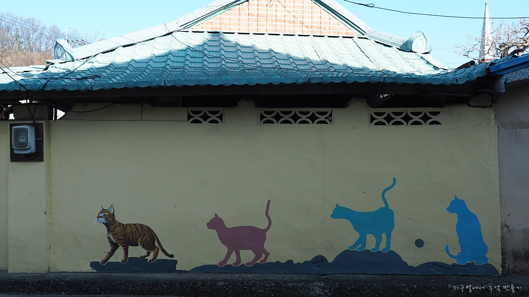 마을은 이곳저곳에 여러 가지 벽화를 많이 그려 놓았네요.