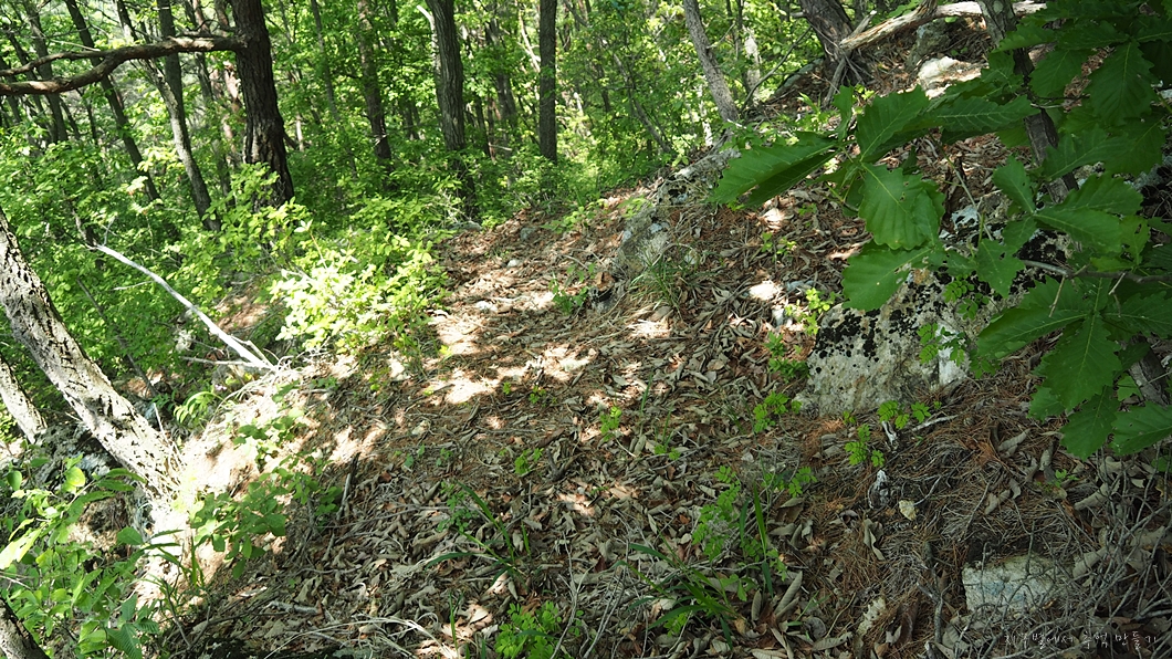 정상에는 달성서씨 무덤이 있던데 이 무덤을 관리하는 분들이 오르는 길이 등산로가 되는 것 같고 그 길을 찾아 올라야 되는데 요즘은 나무들이 한창 자라는 시기라 들머리는 알려줘도 찾아 오르기 쉽지 않을 것 같네요.