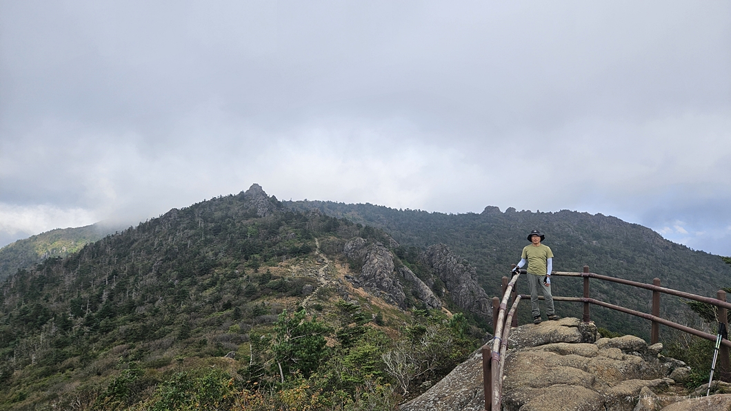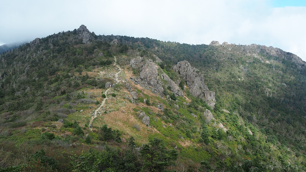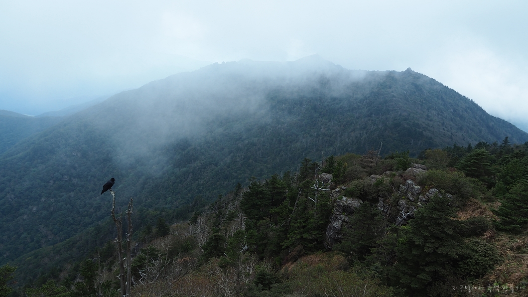 보이는 봉우리 뒤로 멀리 천왕봉이 우뚝해야 하는데 그나마 운무 걷히는 순간이 이 정도밖에 보이지 않네요.