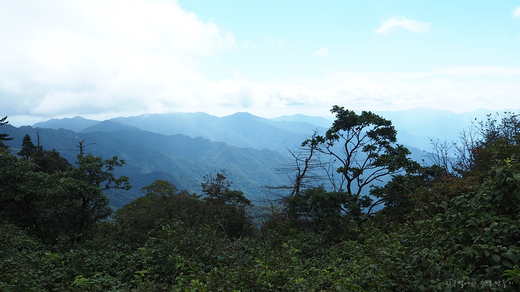 좌측은 가려서 보이지 않고 지리 남쪽 계곡과 능선들은 열려져 있습니다.