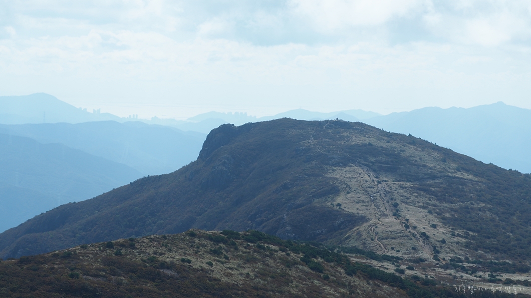 좌측의 신불과 간월산 정상은 운무에 가려져 있고 우측으로는 멀리 고헌산이 보이네요.