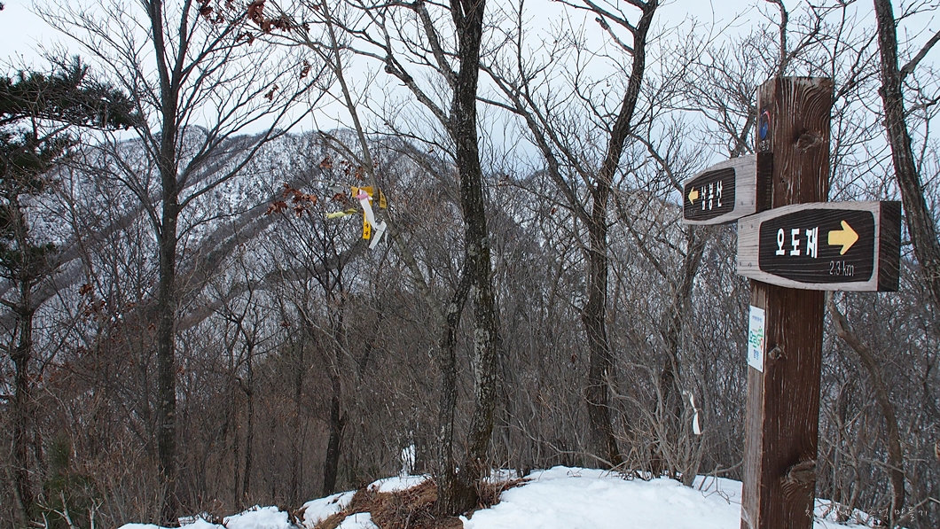바닥에 눈이 쌓여 등산로가 높아져 나뭇가지에 머리를 몇 번 박았는데 아직도 머리 한 곳이 얼얼하네요.
